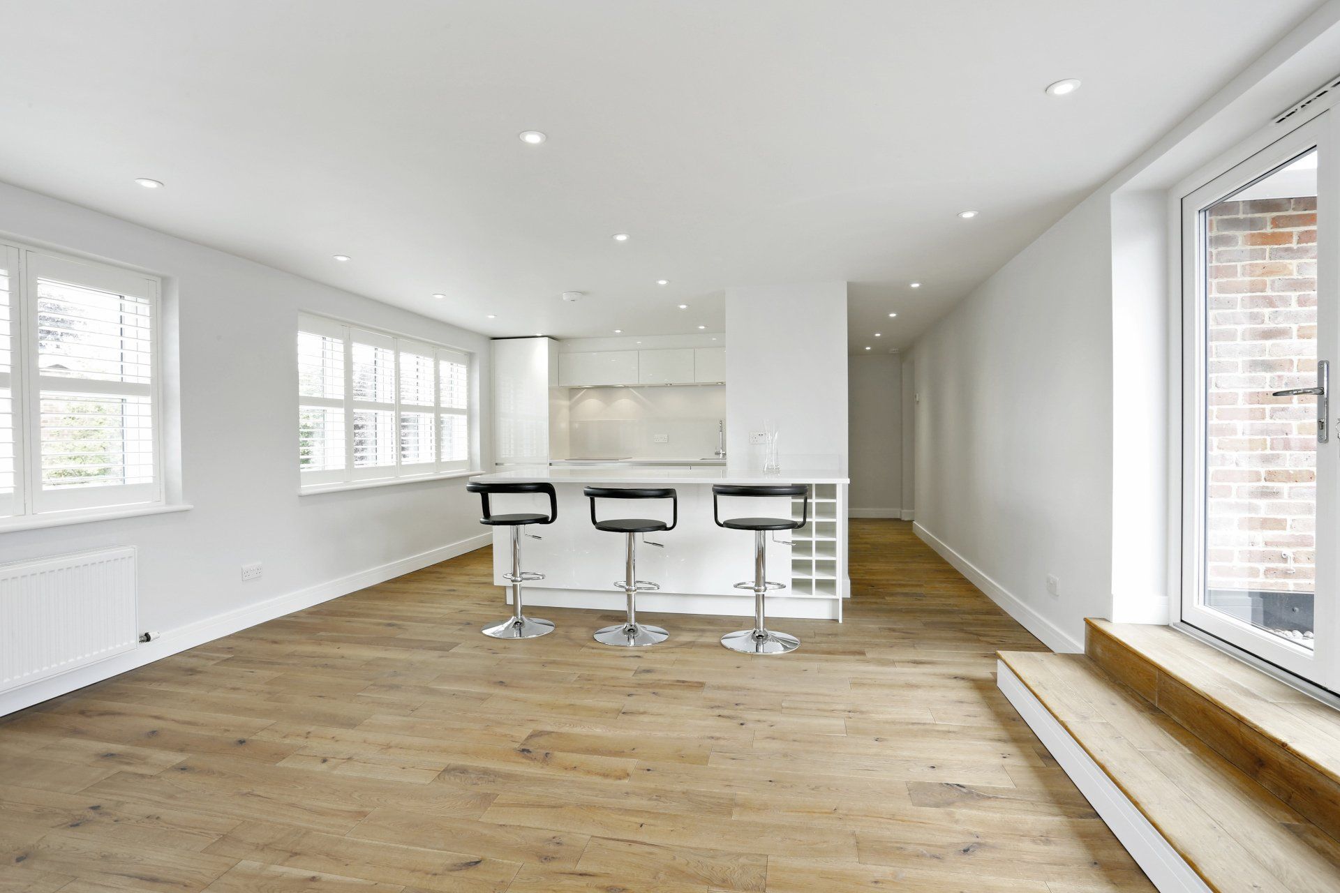 Open plan kitchen, dining and lounge. Utility cupboard. Gas combi boiler to heat radiators and hot water.